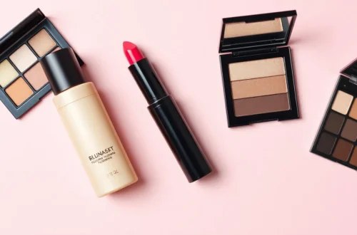 메이크업과 스킨케어 도구들이 놓여있는 이미지